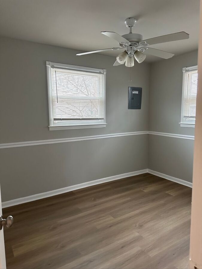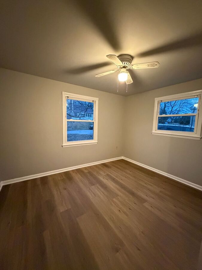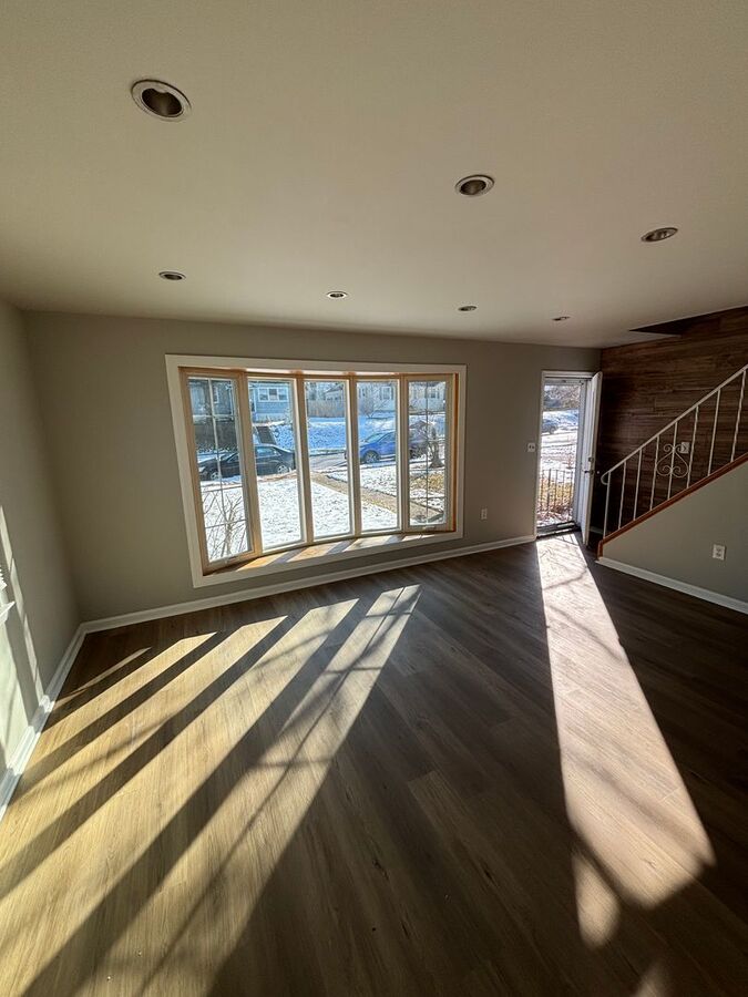 Hardwood floors throughout, Modern new finishes- featuring: On the main level a new kitchen with dining area & granite countertops, spacious living room, Fully renovated Bath and two bedrooms.