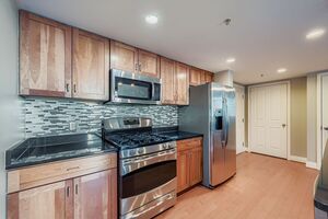 Hardwood floors throughout, Modern new finishes- featuring: On the main level a new kitchen with dining area & granite countertops, spacious living room, Fully renovated Bath and two bedrooms.