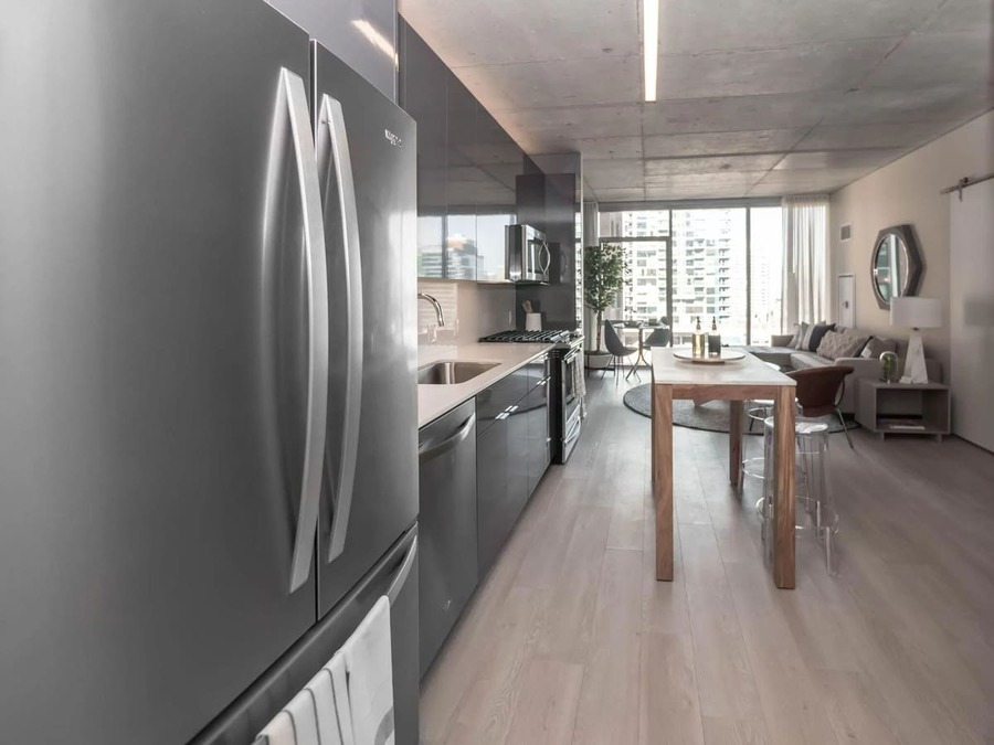 Luxury River North Apartments We give the urban dweller in you a new way to live and play in our luxury River North apartments. When you live here, you get more than an elegantly designed home; you get a whole community complete with fabulous amenities you’ll never want to live without again. Quartz countertops and backsplashes, Whirlpool stainless steel appliances, High-gloss cabinetry with soft-close function, Floor-to-ceiling windows, Solar shade window treatments, Grohe kitchen and bathroom fixtures, Custom closets. Located at 311 W Illinois St, our River North residences are in the prime spot for everything from the hottest bars and nightclubs to the coolest coffee spots.