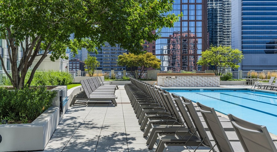 We love this location because it has access to everything without being right in the middle of it. Only 2 blocks to your east and over the river you ll be in River North, while 4 blocks south puts you in the booming West Loop area. The CTA Blue, Green and Pink Lines are a short walk, as is access to the Metra at the Ogilvie Transportation Center. Jump on the 90/94 Expressway in less than 5 minutes! We also love this property s amenities, highlighted by the full-size indoor basketball court, large outdoor pool and spa with cabanas and grilling stations, top of the line fitness center, and sauna/steam room. You ll also find smartly-designed co-working spaces and an on-site restaurant as well as a 24-hour security door staff in this 100% smoke-free building.