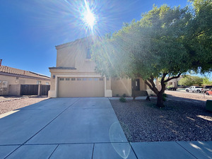 This two-story, 3 Bedroom, 2 Bathroom home has an open-concept main living area that has tons of natural light. There is wood laminate and ceramic tile flooring throughout the home and the laundry room is conveniently located upstairs. The Primary bedroom is spacious and features a large walk-in closet with shelving. If you are not a fan of yard work then this home is for you. The backyard is completely paved as well as the sides of the house. There is only a small area in the front yard that needs to be maintained. Stove, built-in microwave, dishwasher, refrigeratir, washer/Dryer are included.