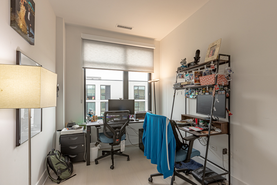 Stunning 2 bedroom, 2 bathroom apartment with den in Bucktown featuring floor-to-ceiling windows and a bright, open layout. This modern unit offers a contemporary kitchen with custom cabinetry, ample storage throughout, and an in-unit washer and dryer for everyday convenience.