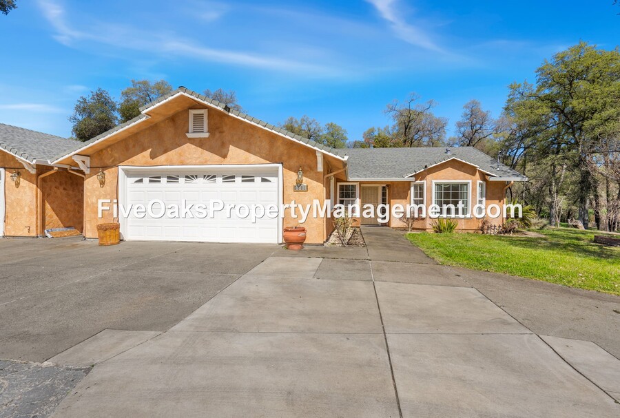 Discover this charming 3-bedroom, 2-bathroom home for rent in Placerville, situated on a serene 1-acre lot at the end of the street. This gated property offers ample parking with a spacious 4-car garage. Inside, the inviting great room boasts vaulted ceilings and a cozy wood-burning stove, perfect for relaxing evenings. The kitchen is designed for convenience, featuring granite countertops, a pantry, and a central island ideal for meal prep. Formal front room for special occasions. The primary bedroom includes a French door leading to the backyard and generous closet space, while the updated primary bathroom showcases a custom shower and dual sinks. Convenient indoor laundry room with sink. Enjoy the privacy of the backyard, complete with fruit trees for a tranquil outdoor retreat. Easy access to Hwy 50.