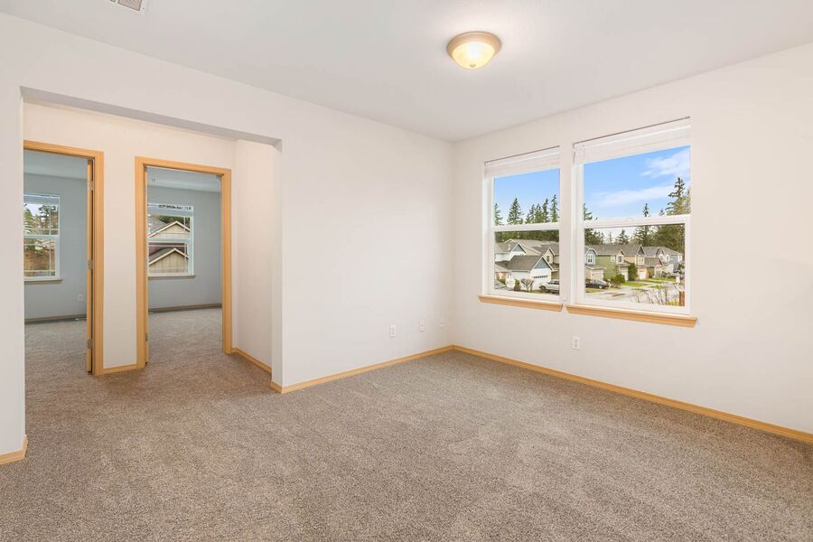 Upstairs, the spacious primary bedroom offers great natural light and plush carpeting. The primary bathroom includes a double vanity, large soaking tub, separate shower, private toilet area, and a generous walk-in closet. A versatile loft area with windows and a closet provides additional living or workspace. The laundry area includes a washer and dryer, cabinets, and extra storage. Two additional bedrooms feature carpeting and ample closet space, along with a secondary bathroom with a shower.
