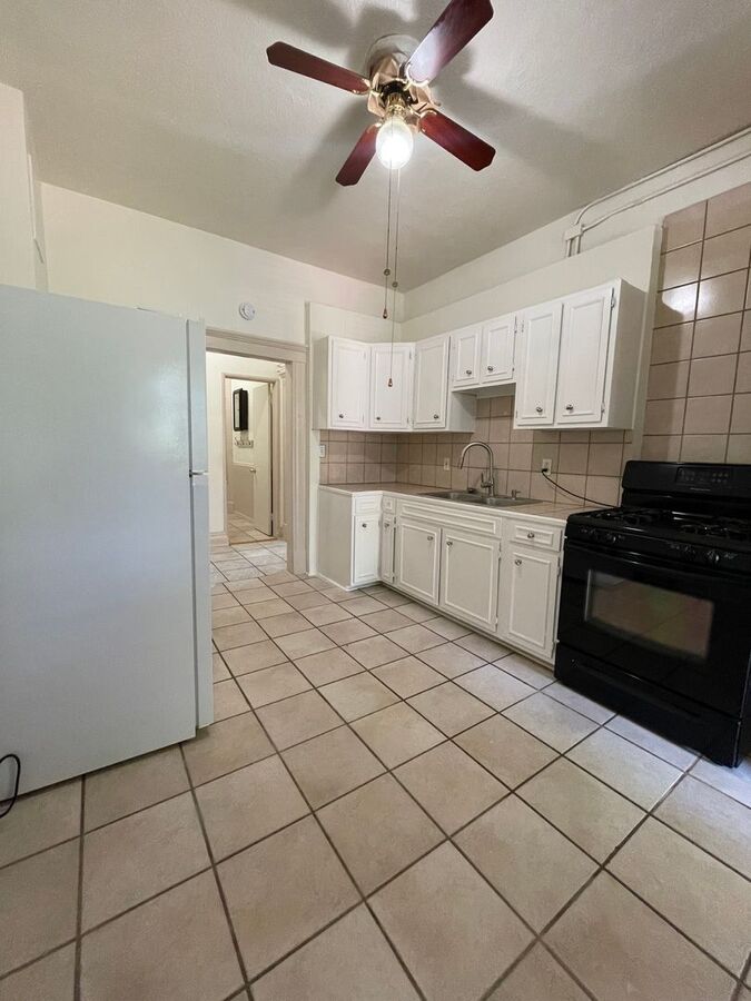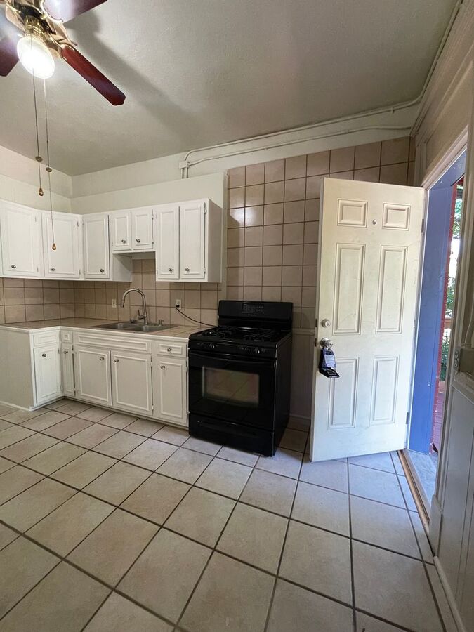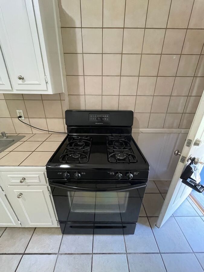 Eat in kitchen with a gas stove, Refrigerator, and lots of counter space