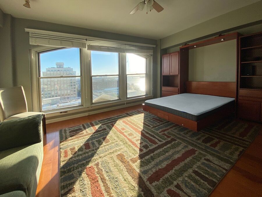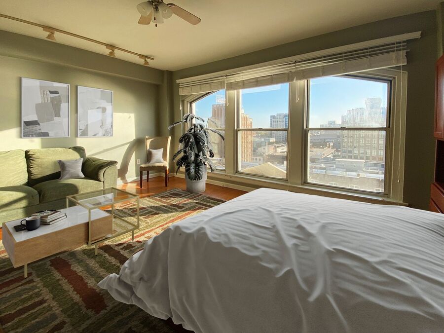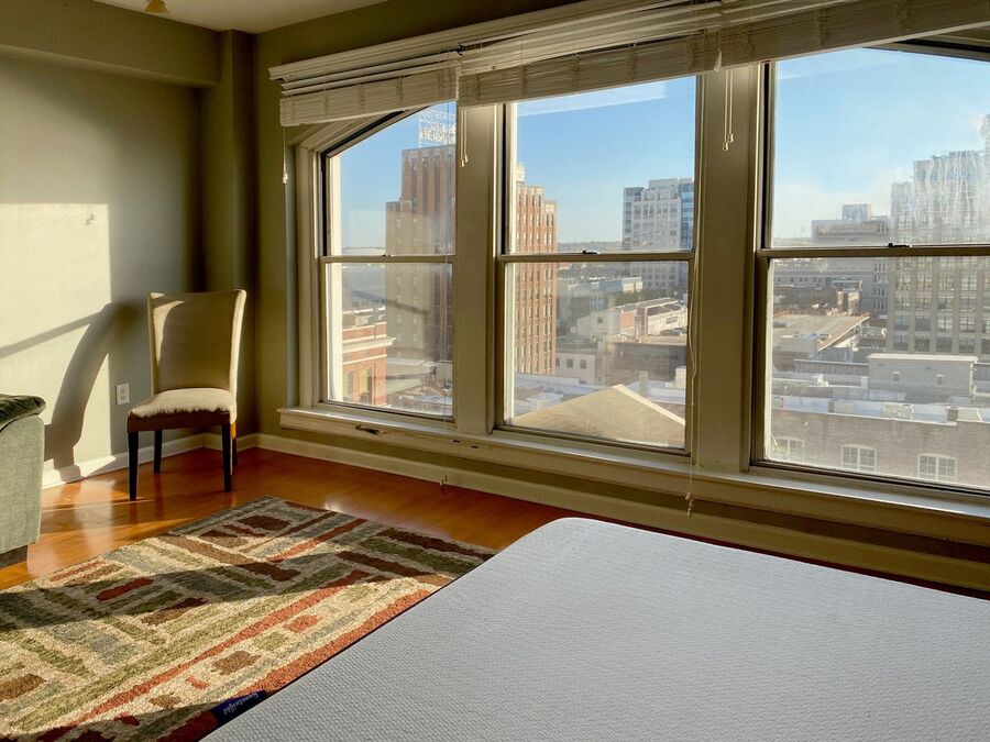 Enjoy incredible city and river views from this semi-furnished studio on the 11th floor of the Shrine Building, located in the heart of Downtown Memphis. Several stylish furniture pieces are included, while still leaving room to personalize the space and make it your own.