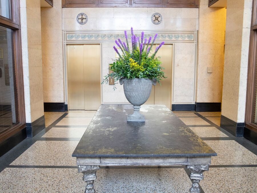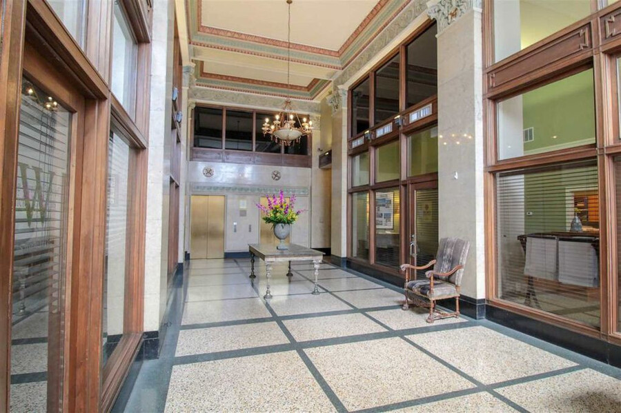 The Shrine Building is a controlled access building and offers residents top-tier amenities, including an indoor pool, fitness center, and a rooftop deck with grills. While parking is not included, nearby options are available.