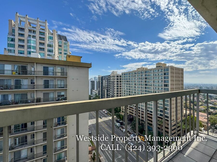 Experience breathtaking views from this ideally positioned 2BD/2BA penthouse in the heart of the Wilshire Corridor and Westwood. Situated on the coveted southeast corner of the building, this residence offers rare tranquility with no upstairs neighbors and sweeping vistas of the city and surrounding upscale neighborhoods. Step inside to a bright, airy living and dining area where your eye is immediately drawn to the expansive cityscape below. The open layout flows seamlessly onto a generous balcony, the perfect spot for morning coffee or relaxing evenings under twinkling city lights. Located in the prestigious Wilshire Selby West, this secure building features an elegant lobby with 24-hour concierge service and amenities including a serene pool, a refreshing sauna, and enhanced security for peace of mind. Additional conveniences include two gated parking spaces, a storage locker, and EV charging. Enjoy effortless access to Westwood Village, UCLA, and the UCLA Medical Center, with premier shopping, dining, and cultural destinations in nearby Brentwood, Beverly Hills, Century City, and Santa Monica, all without the hassle of freeway traffic.