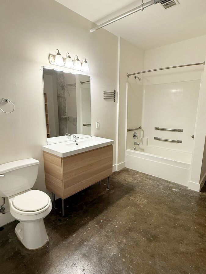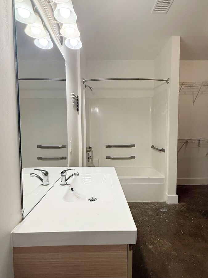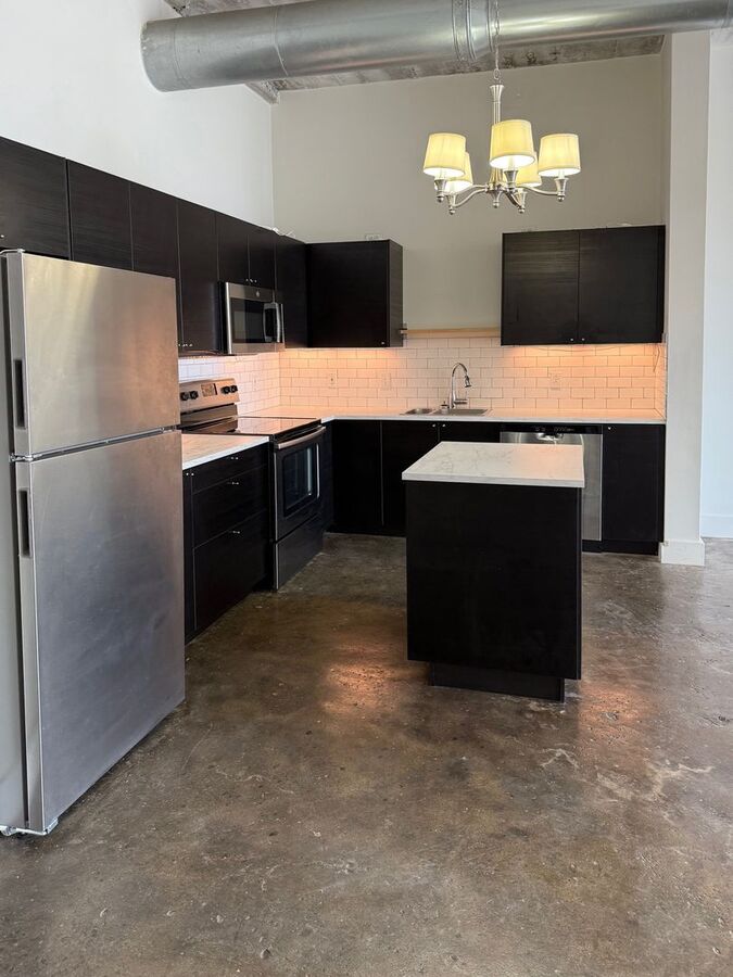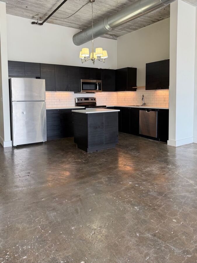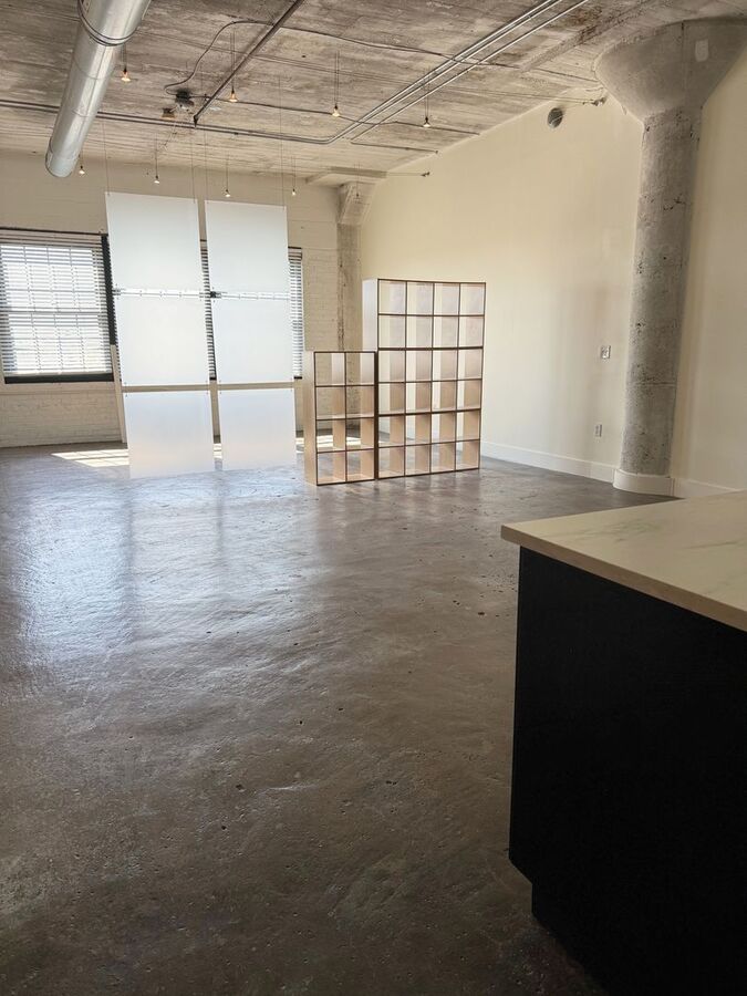 This spacious studio condo at The Lofts at South Bluffs features a flexible layout with built-ins and dividers to help define living, dining, and sleeping areas. Fresh neutral paint throughout. The kitchen includes energy-efficient stainless steel appliances and modern cabinetry and countertops. The bathroom features a large shower/tub combo and opens to a generous walk-in closet with built-in shelving for extra storage. One reserved parking space in the connected garage is included. Water, trash, and sewage are covered. Pet friendly! Washer/dryer included.