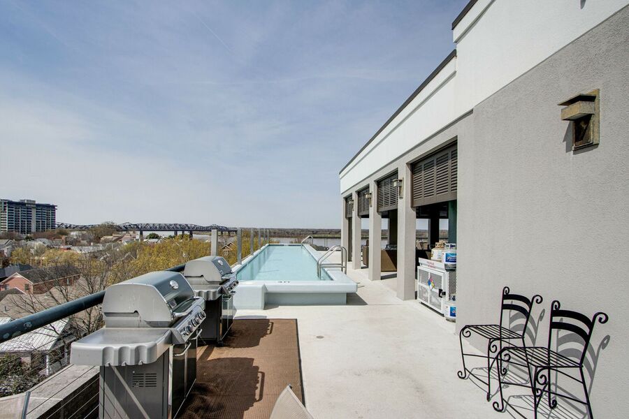 The Lofts at South Bluffs is located in the South Main area of Downtown Memphis and offers a rooftop terrace with stunning river views, a pool, ample seating for entertaining, an outdoor kitchen, a sauna, and a fitness center.