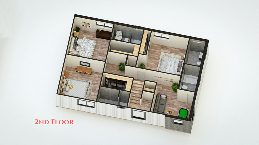 TCU housing at its best. There are 5 generous private bedrooms, each with a private bathroom and a private coded door lock. The common floor features solid-surface flooring, a balcony, a large open living area with a flat-screen TV, a powder bath, and a kitchen that your parents will envy. There are 2 bedrooms on the 1st floor and 3 on the 3rd floor with a set of washers and dryers on each floor – so no schlepping up and down the stairs to do your laundry. Parking is private, well lit, fenced, off street, and onsite.