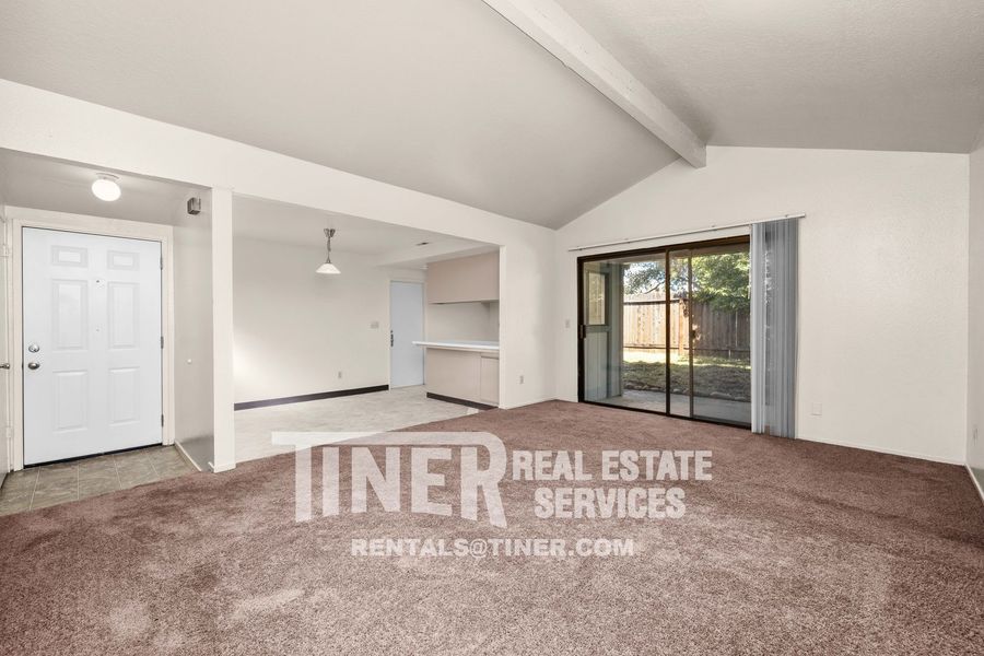 This charming home features 3 bedrooms and 2 bathrooms, perfect for comfortable living. The property boasts a 2 car garage, ideal for parking and storage. Inside, you'll find a mix of carpet and vinyl flooring throughout, creating a cozy atmosphere. The corner lot location provides ample space and privacy. The living room and dining area are perfect for entertaining guests or relaxing with loved ones. The kitchen is equipped with new Quartz countertops for a modern touch. The primary suite includes a private bath for added convenience. Step outside to enjoy the covered patio and backyard, perfect for outdoor activities. Additional amenities include a dining bar, new electric range, new refrigerator, dishwasher, garbage disposal, and laundry in the garage. Don't miss out on this fantastic opportunity to call this lovely duplex your new home!