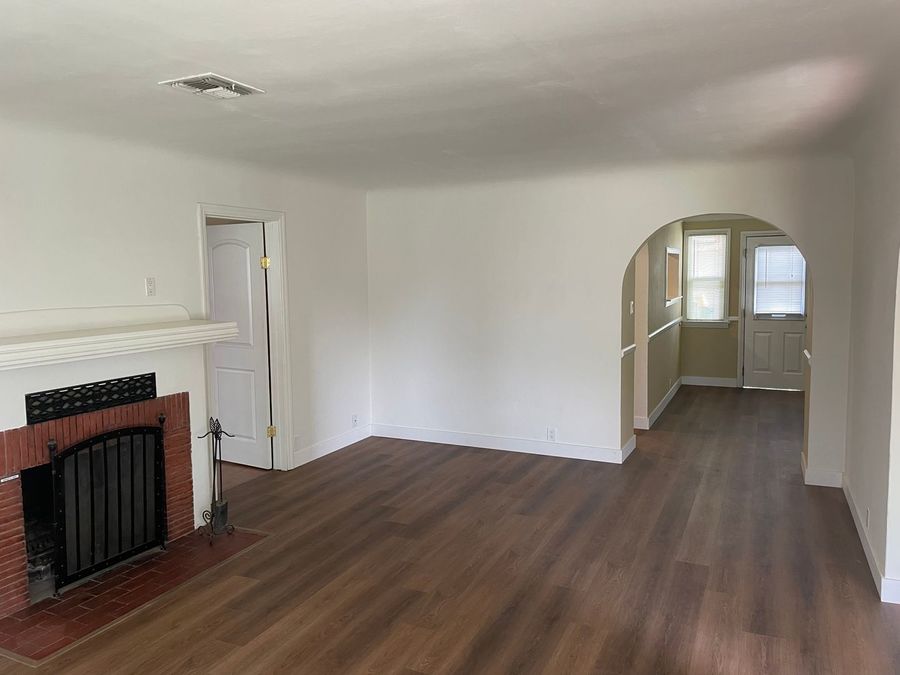 The home has a large living room with a fire place and separate dining room.