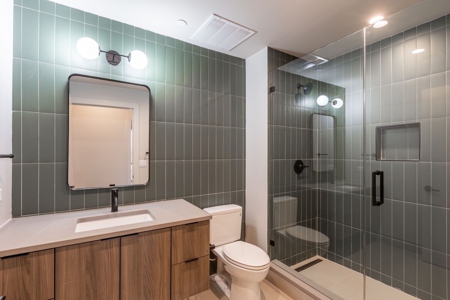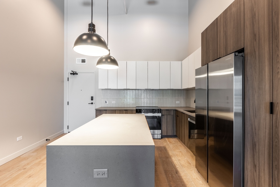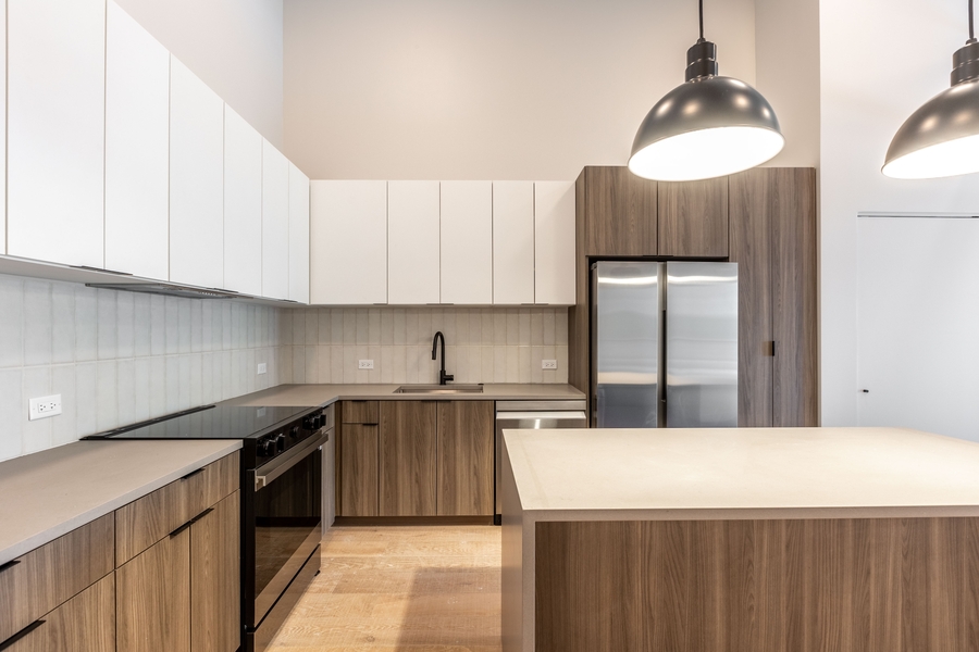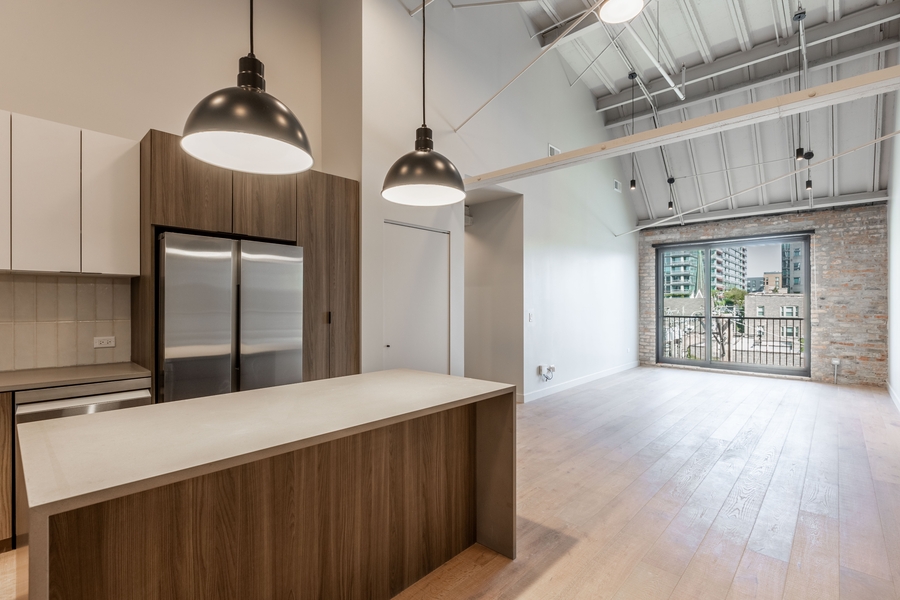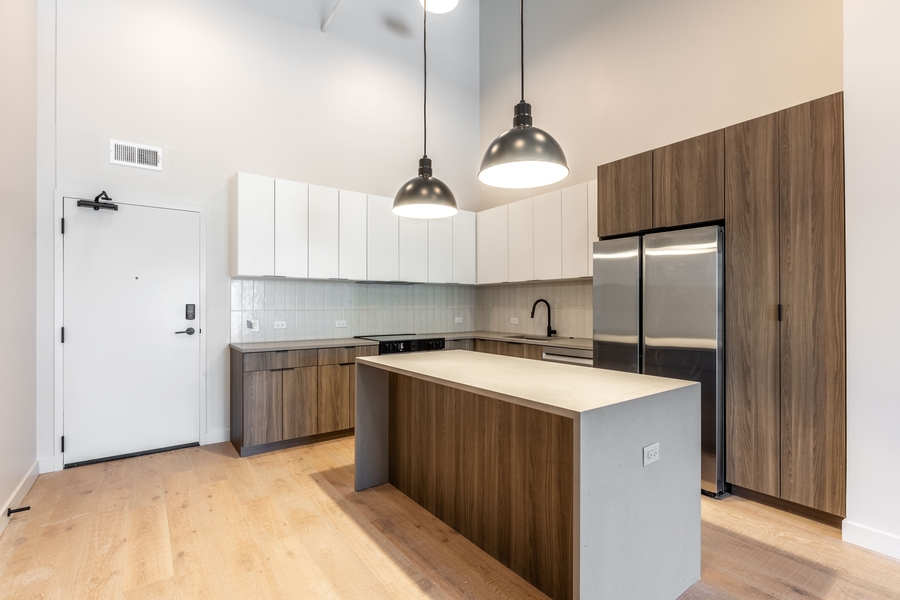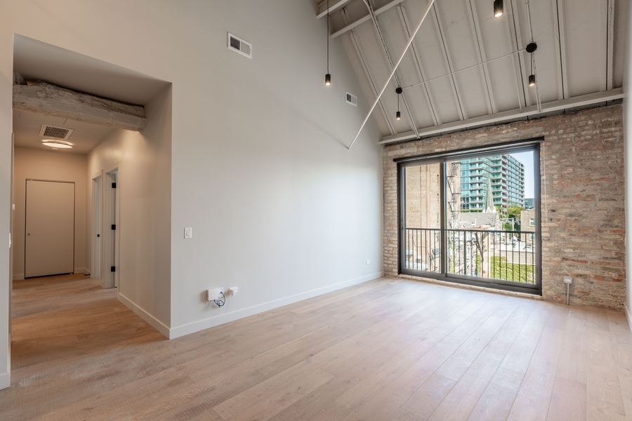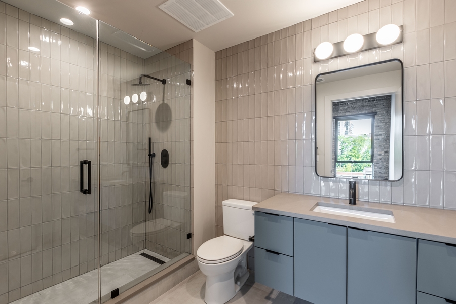 This 3 bedroom, 2 bathroom unit at the newly built Varsity sits on the penthouse level of the building; the layout features exposed cathedral ceilings, brand new hardwood flooring, designer lighting, and unique architectural accents. The designer kitchen boasts quartz countertops and brand new appliances while the living room offers beautiful exposed brick and huge windows for all that natural light. The bedroom offers ample space for a queen sized bed and a custom organized closet. The bathroom has spa-inspired floor to ceiling tiling for a sharp look and easy cleaning.