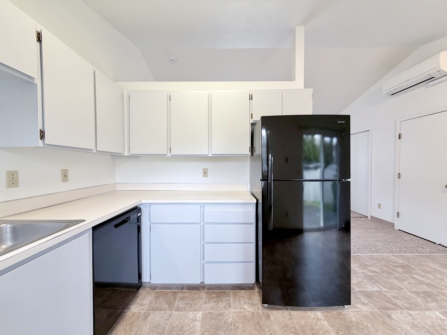 Step inside to find vaulted ceilings, fresh paint, and brand-new carpet, giving the home a bright and refreshed feel. The kitchen features new black appliances and abundant cabinetry, providing plenty of storage and space for everyday cooking.