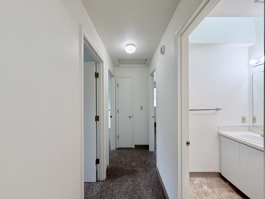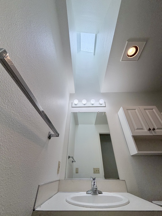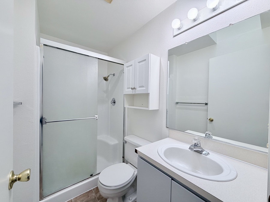 Down the hallway, you’ll find a shared full bathroom with a tub/shower combo and skylight, bringing in natural light. Each bedroom offers large windows and standard-sized closets, while the primary suite includes its own ensuite bathroom with a stall shower and skylight.