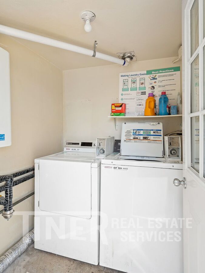 The unit includes one space in the shared garage along with additional storage. Coin-operated laundry is conveniently located on site and shared with the fourplex. The property is located within an HOA community and parking restrictions apply.