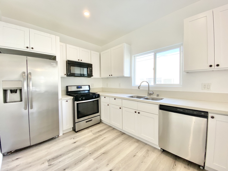 Quartz countertops, brand new shaker cabinetry and fixtures.