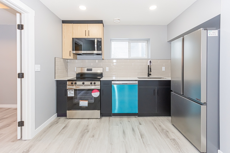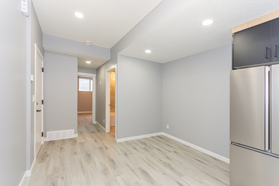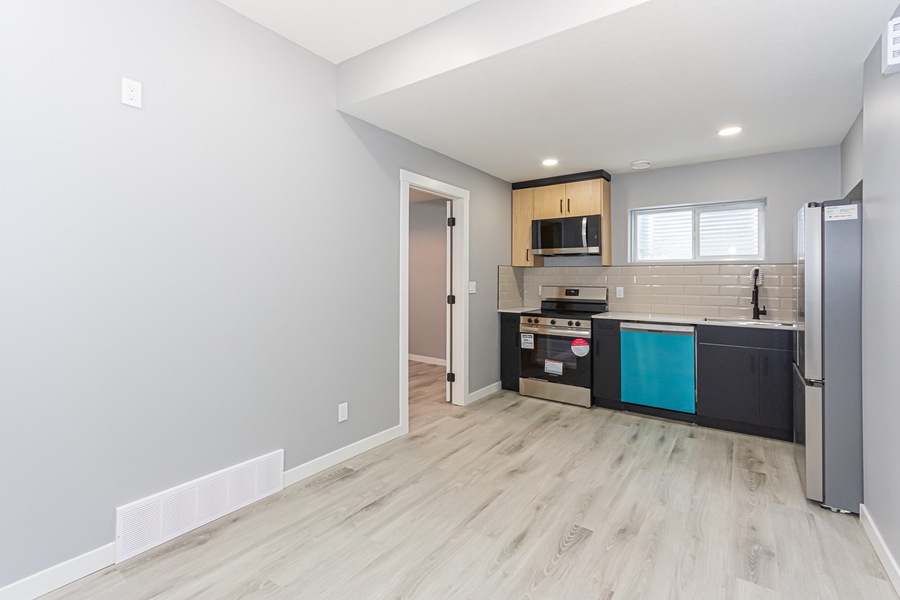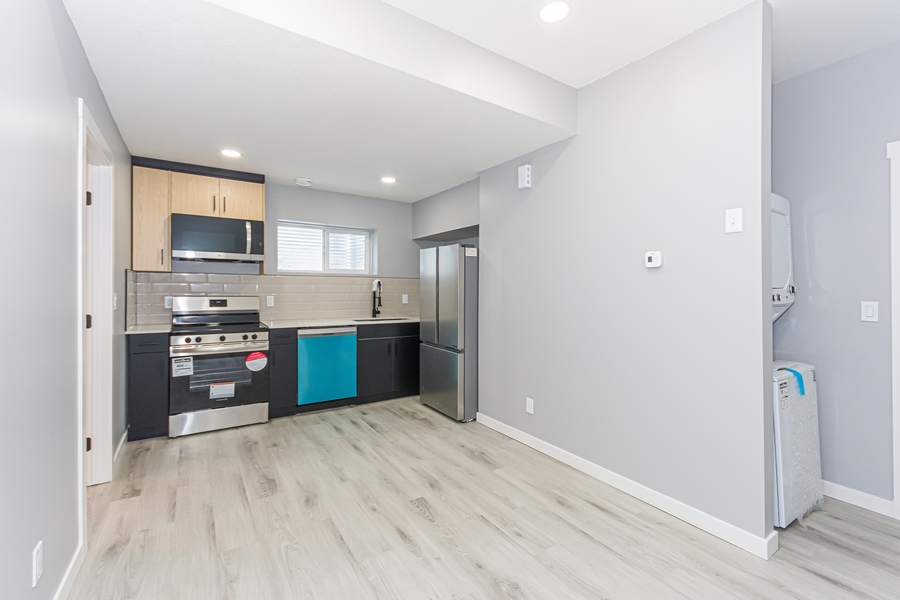 This New, modern 1-bedroom, 1-bath basement suite is located in a newly built townhouse. The unit features sleek finishes, providing a comfortable and stylish living space. This unit includes a spacious bedroom, a full bathroom, and an open-concept living area.