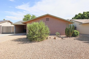 Beautiful 2 Story Townhome w/ 2 Car Garage and All Appliances Included w/ new stainless side by side refrigerator w/ dispenser! Tile Wood-Look Flooring Downstairs; Carpet Upstairs! Master is Upstrs w/ Vaulted Ceiling and Ceiling Fan. Mirrored Closet Doors Throughout! 3rd Bedroom is Downstairs Next to Full Bath, Great For Guests or Adult Family Member. Enjoy Spacious Kitchen with Bay Window Dining, Yards of Cabinet & Counter Space. Loads of Storage Space w/ Two Separate Closets in Every Bedroom! Big Under-Stair Closet, 2 Walls of Cabinets in Garage. Security Door on Front, Arcadia Door to Easy Care Back Yard. Close to Community Pool & Tennis Court. Enjoy Quiet, Lovely Homestead Community with Schools Ranked Among AZs Top 10!