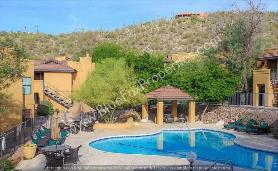 Beautiful 2 bedroom, 2 bath ground floor condo located in the gated community of The Villas at Sabino Canyon. The community features resort-style amenities including a heated pool & spa, exercise facility, bbq areas, park-like grounds, front security gate, and panoramic desert views. This condo offers a split floorplan, galley kitchen with SS appliances: dishwasher, stove, fridge, built-in microwave, plenty of cabinets, storage, Corian counters, and washer and dryer included. Water, sewer, and trash included. 1 assigned covered parking.