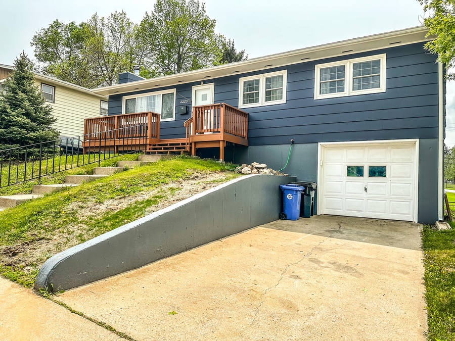 Wonderful West Side Home! Beautifully Updated Rambler with Open Concept Living Room & Kitchen with Large Dine-in Island. Gas range and RO water system in kitchen. Unique Entryway & Spiral Staircase to a Cozy Basement with Fireplace and Built-in Bar. 2 Bedrooms, 1 Full Bath upstairs. Gorgeous hard wood floors throughout living room & bedrooms. Three-quarter bath and large laundry room with washer & dryer in basement. Private back yard with covered deck and enclosed lower-level patio. Single car garage. One Pet negotiable with additional pet deposit and pet rent.
