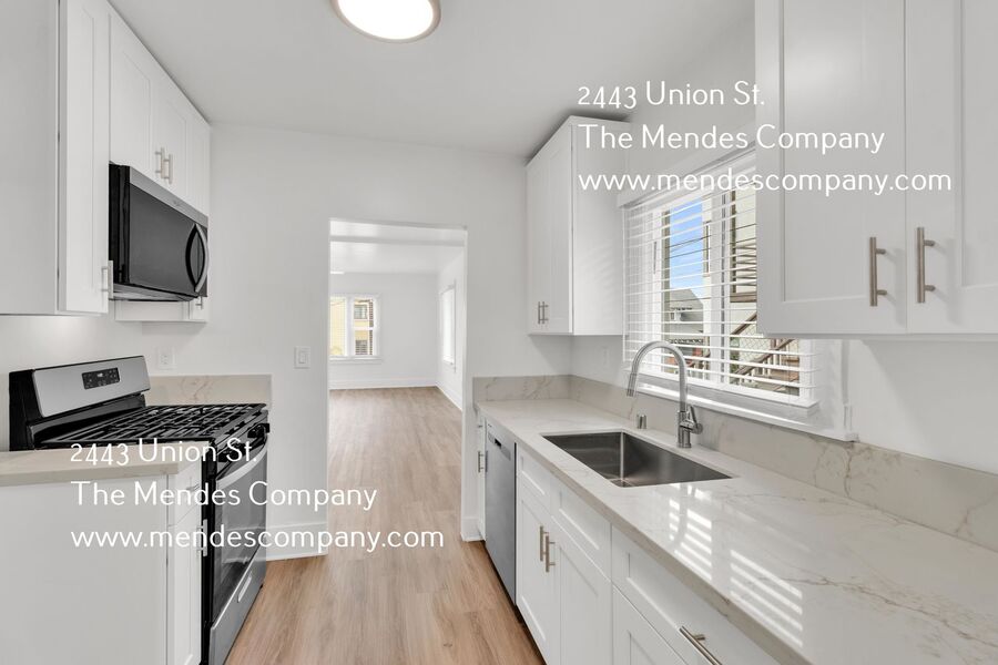 This fully updated 2 BD / 1 BA apartment home features updated flooring, a sleek kitchen with brand new appliances, a spacious living room, washer/dryer in-unit, new modern fixtures throughout, a private backyard and a manual compact storage garage.