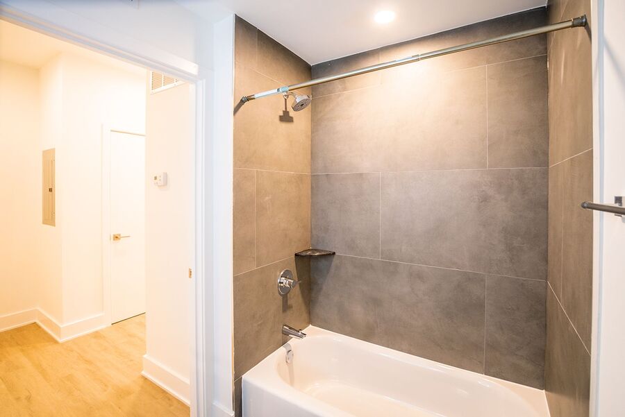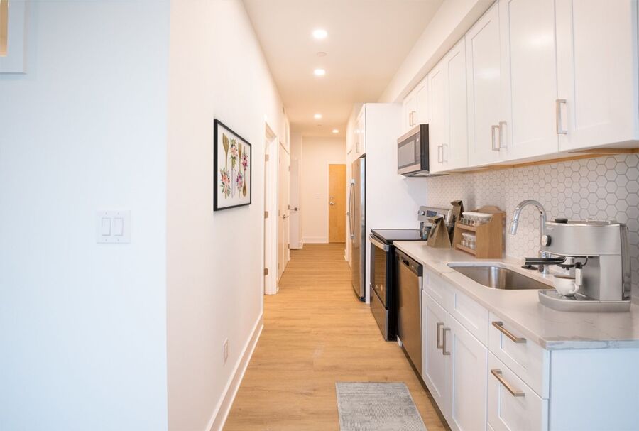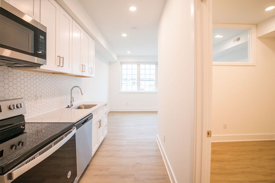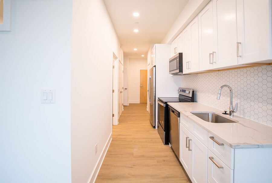 Don’t miss the chance to live in this wonderful apartment building with a prime location in the heart of Fishtown! Situated within walking distance from staple Philadelphia attractions like La Colombe Coffee Roasters, Wm. Mulherin’s Sons, Laser Wolf, and Jinxed Antique Furniture store, you are sure to enjoy countless entertainment options and conveniences. This 1 bedroom, 1 bathroom apartment boasts floor to ceiling windows with a juliette balcony, central air, in-unit washer/dryer, hardwood flooring and clean, modern finishes throughout. The kitchen features pristine white cabinets and white tile backsplash, quartz countertops, as well as stainless steel appliances including a refrigerator, dishwasher, microwave, garbage disposal and electric range. The bedroom has an elevated window allowing natural light and its own closet. There are additional closets in the main space for even more storage. The bathroom has a sleek white vanity, natural wood cabinetry and a full shower and tub with black contrasting tile for a contemporary look. Last but not least, head up to the expansive shared roof deck to enjoy the weather and take in beautiful city views. Don’t miss out on this superb new construction apartment in a fantastic location!