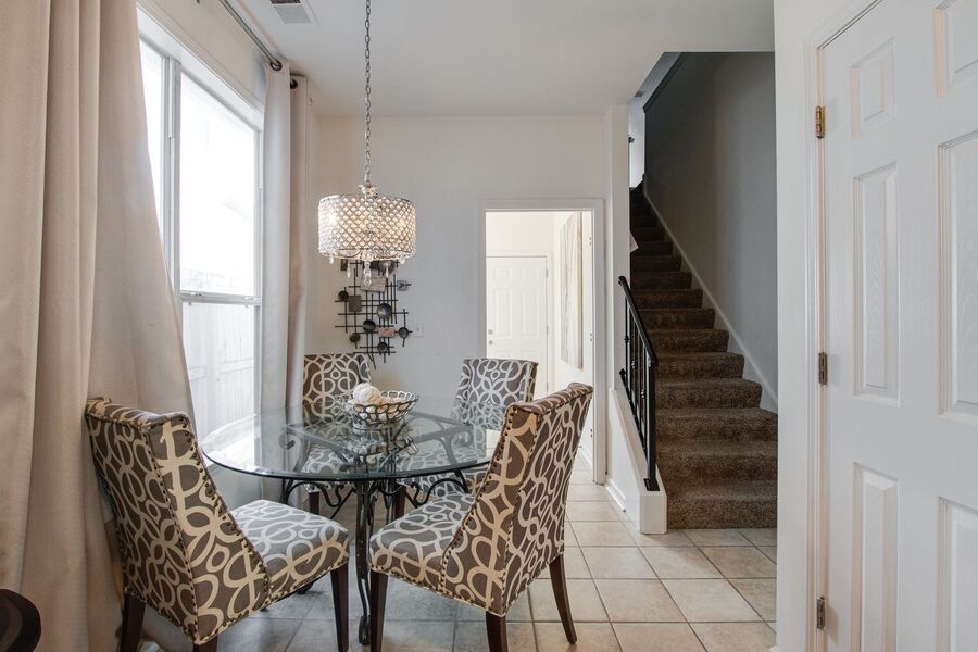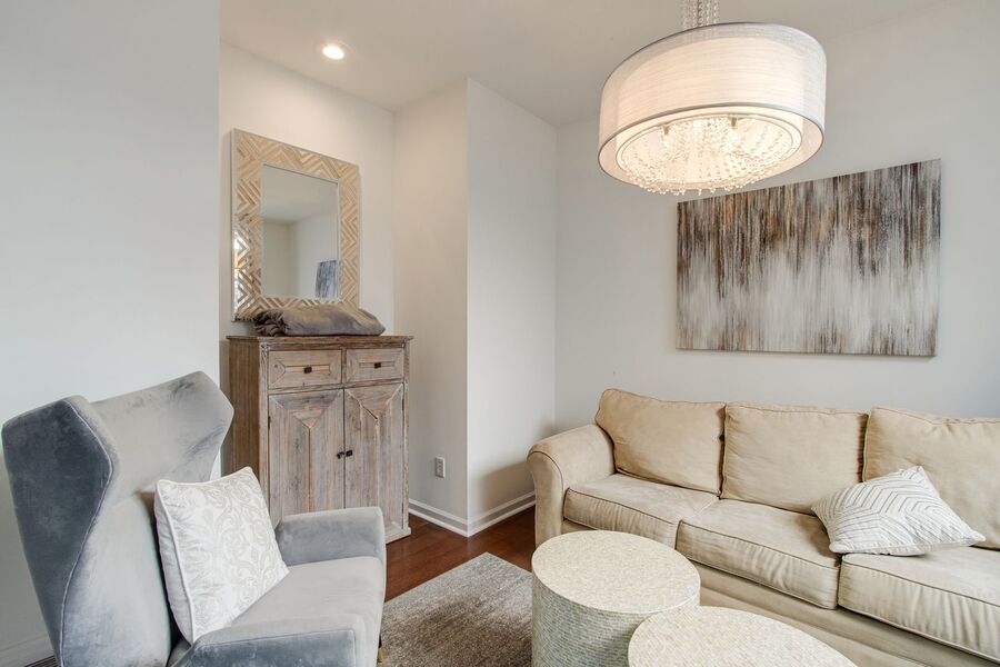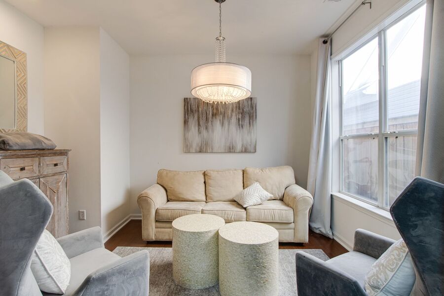 This fully furnished 3 bedroom, 2 bathroom home on Mud Island offers plenty of space and style in one of Downtown’s most desirable residential communities. The home opens to a spacious living area with hardwood flooring, a cozy fireplace, and an additional living space just off the main room. Stylish, modern furnishings and updated light fixtures throughout add a polished, contemporary feel. The kitchen features black and stainless steel appliances, a breakfast table, and opens into the living area for easy entertaining.