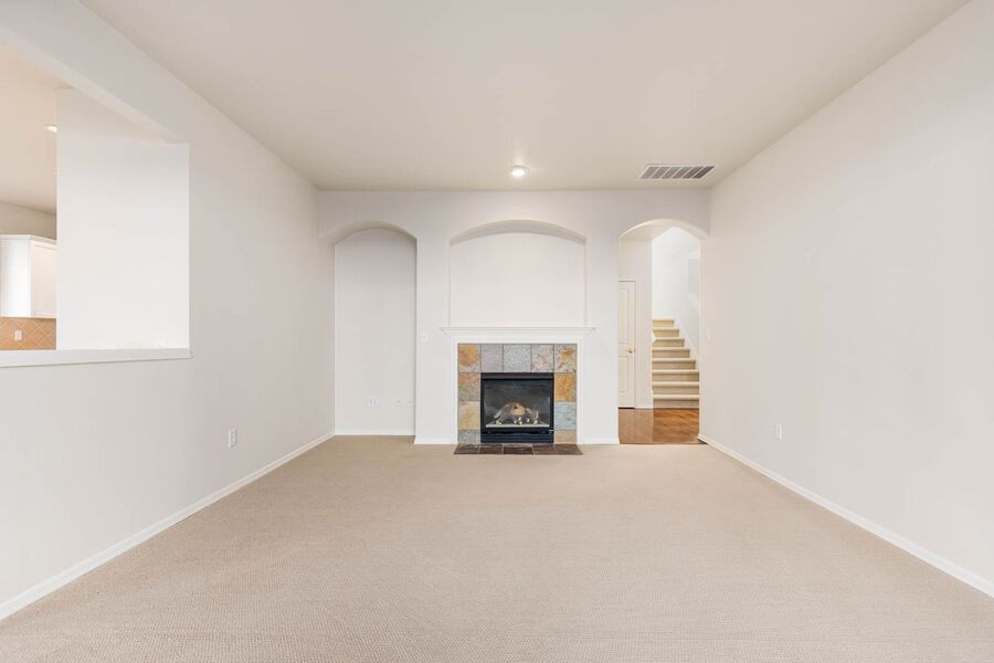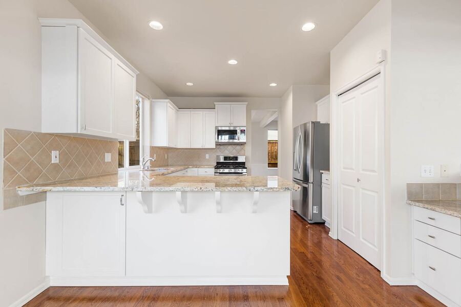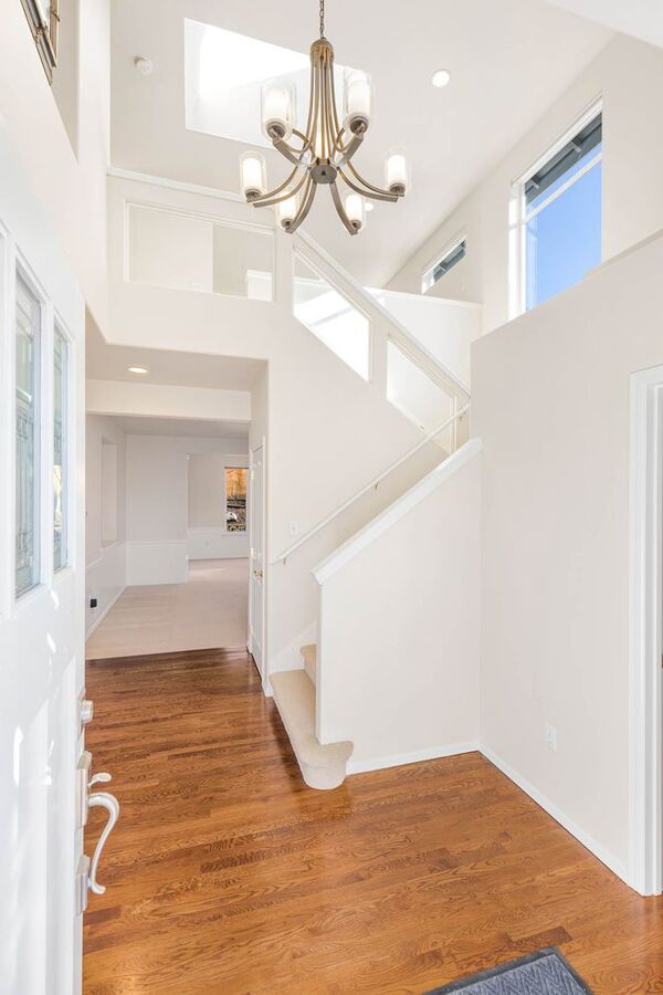 Step into this stunning 4-bedroom home featuring a grand entrance with vaulted ceilings and sleek glass stair rails that create an immediate wow factor. Just off the kitchen, you’ll find a spacious family room with a cozy gas fireplace—perfect for relaxing or entertaining.