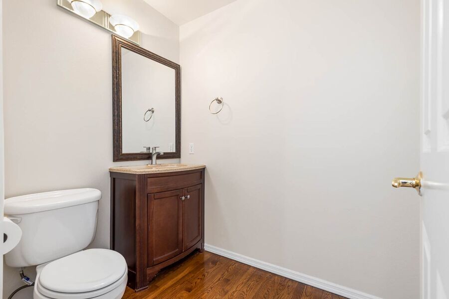 The open kitchen is thoughtfully designed with stainless steel appliances, a gas range, built-in desk, eat-in dining space, ample cabinetry, and a large pantry. The main floor also includes a formal dining room, separate living room, and a convenient powder room, offering plenty of space for everyday living and gatherings.
