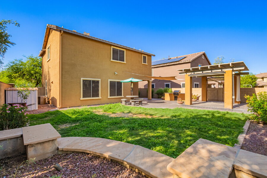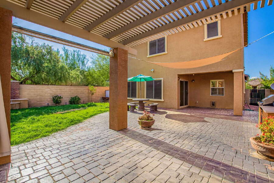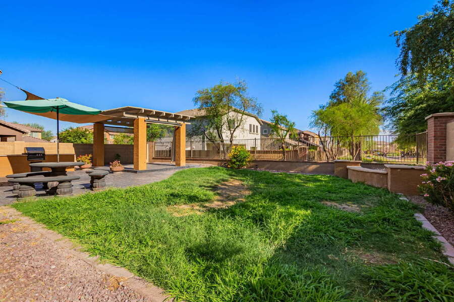 Updated 3-bed, 2.5-bath home on the desirable Peoria/Glendale border. Features include plantation shutters, ceiling fans, updated LVP flooring and recessed lighting, fenced front courtyard, spacious covered patio with built-in BBQ, open floor plan, and functional kitchen with island, ample storage with a bonus area under stairs, and walk-in pantry. Generous master suite offers double sinks and a large walk-in closet. Large laundry room with washer and dryer. Conveniently located near Loop 101, Arrowhead Towne Center, State Farm Stadium, Desert Diamond Arena, Rio Vista Park, and more. A perfect blend of comfort and location!Bbq