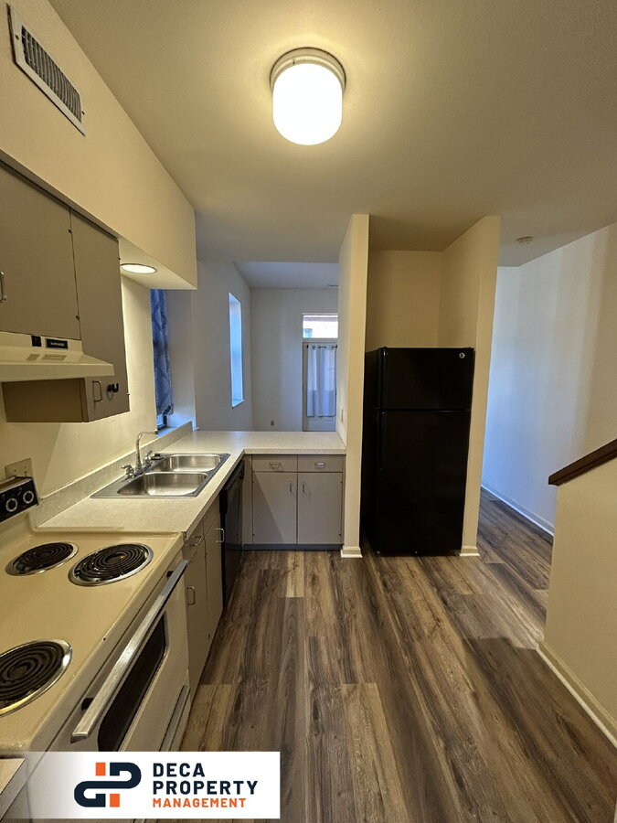 Step inside to a spacious living room featuring durable LVP flooring and an open layout that flows seamlessly into the kitchen, perfect for comfortable everyday living. The bright kitchen offers an electric stove, refrigerator, pantry storage, and a double sink, providing both functionality and convenience.