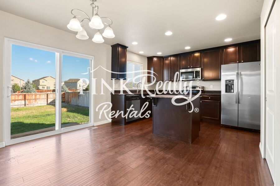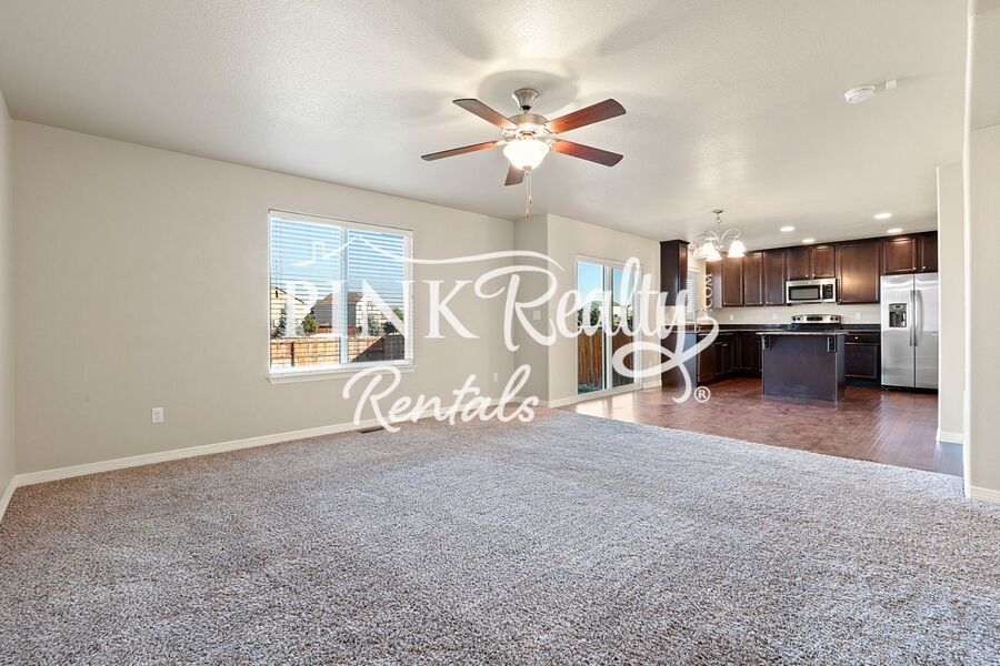 This beautiful home is located in the desirable Lorson Ranch community, close to Fort Carson with easy access to Peterson AFB and the rest of Colorado Springs. The main level has an open floor plan with a gorgeous updated kitchen - large pantry, island, stainless steel appliances, dark cabinets, and ample counter space. There is a walkout to the patio and fully fenced backyard, and a convenient half bathroom on the main level as well. The primary bedroom upstairs has an attached five-piece bath and walk-in closet. There are also two bedrooms, another full bathroom, and full-sized laundry room all upstairs. The basement is fully finished with a fourth bedroom, another full bathroom, and a family room.