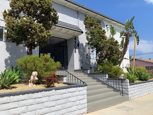 This one bedroom apartment is located on the second floor of a two-story, four unit building. As you enter through the main gate, you will pass a cute lemon tree and a shared patio furnished with a table and chairs for outdoor dining. Once inside, the space features an open floor plan with an oversized kitchen that includes a large kitchen island, quartz counter tops, solid wood cabinetry, stainless steel refrigerator, and gas stove. The large west facing window is the focal point of the living room which provides views of the Silver Lake hills and tons of natural light. The unit also has in unit stacked washer and dryer in nit and ample utility closet space plus large built in linen closet cabinets.