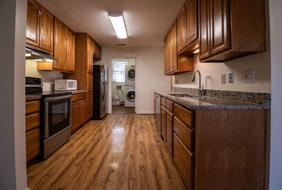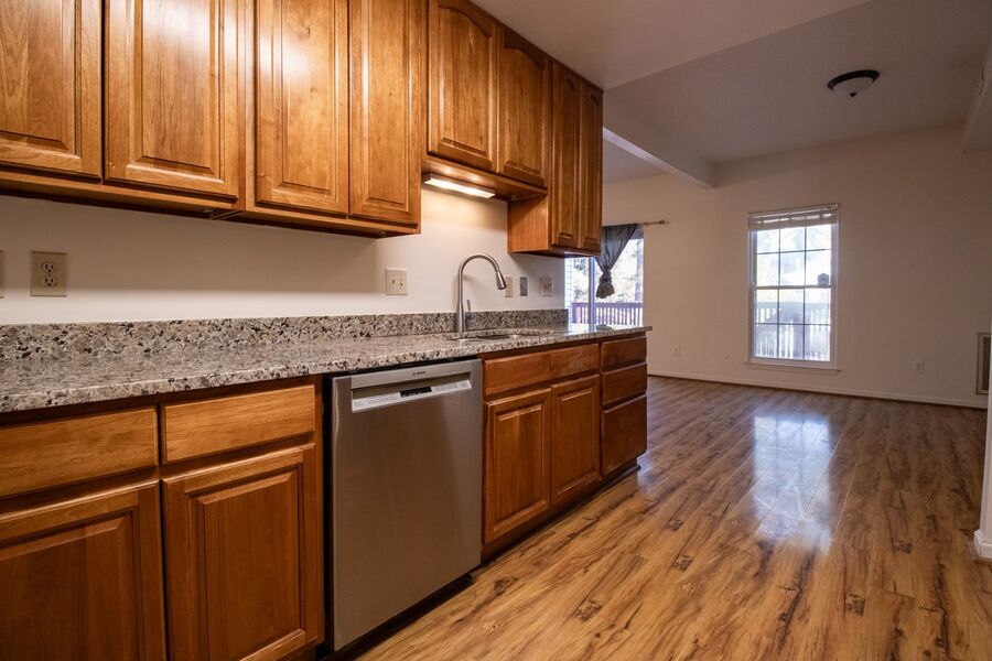 Welcome to this charming two-story townhome located in Williamsburg, VA. This end unit boasts three spacious bedrooms and 2.5 newly updated bathrooms, offering ample space for comfortable living. The updated kitchen is equipped with a refrigerator, dishwasher, stove, and a portable microwave, making meal preparation a breeze. The home also features a convenient pantry for additional storage. The living area is enhanced by a cozy wood-burning fireplace and laminate flooring, while the bedrooms are carpeted for added comfort. A washer and dryer are included for your convenience. Outside, you'll find a welcoming front porch and a deck overlooking the backyard, perfect for outdoor relaxation or entertaining.