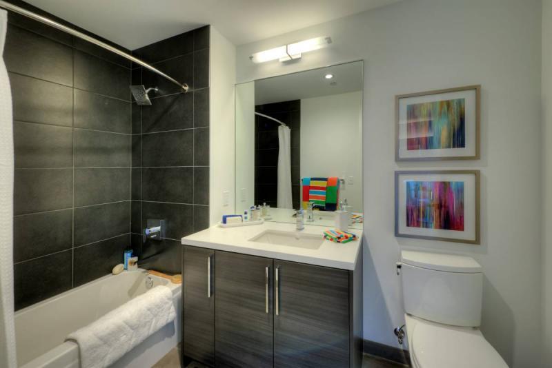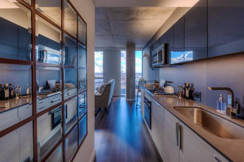 We love this building for a lot of reasons, but mostly because they figured out how to make it beautiful, green and energy efficient without giving anything up. Design, sustainability and community are a priority in this one of a kind setting which offers an impeccably landscaped terrace with private lounges, fire pits and grilling stations, an outdoor pool and sundeck, and a separate rooftop lounge with media room, conference space and fireplace to enjoy the breathtaking city views. Inside, use the lounge with coworking table, modern fitness facility or just enjoy the beautiful artwork and interior space in this 100% smoke-free property. There is a 24-hour security door staff as well.