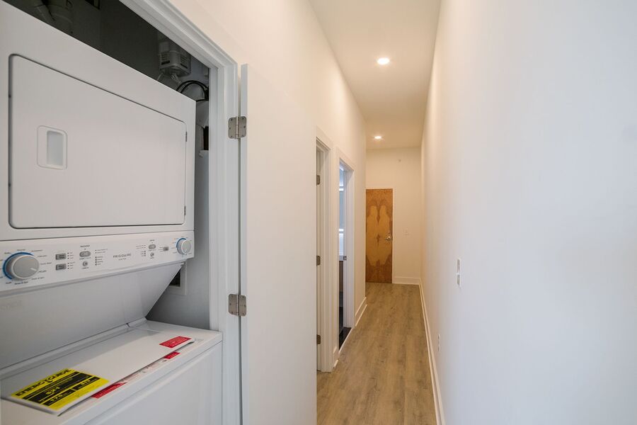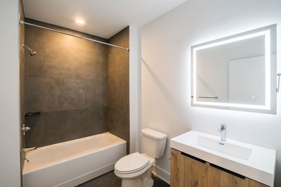 This 1 bedroom, 1 bathroom apartment comes with modern finishes, including hardwood floors, central AC, in-unit laundry, as well as recessed lighting. Natural light is also abundant with multiple windows. The kitchen is beautifully designed with white cabinetry, quartz countertops, stainless steel appliances and honeycomb backsplash tiling. The contemporary full bathroom features a shower/tub and sleek vanity with a unique lighted mirror. Finally, enjoy building amenities that include a shared roof deck with stunning city views as well as a convenient bike storage room.