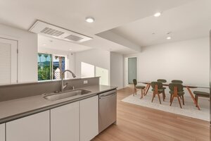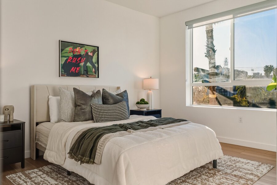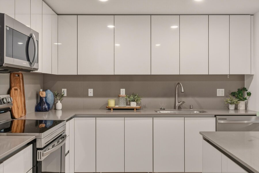 Inside, the lines are clean, the finishes sharp. Spacious open floor plans flow into sleek, high-gloss kitchens outfitted with stainless steel appliances, smooth quartz counters, and minimalist cabinetry. Some units include center islands — just the place to pour a nightcap or hash out a third-act twist. Floor-to-ceiling sliders open wide onto massive private decks, perfect for morning espresso or twilight scripts. And if you’re lucky? Your view includes Capitol Records, the Hollywood Sign, and the glittering skyline of your next chapter.