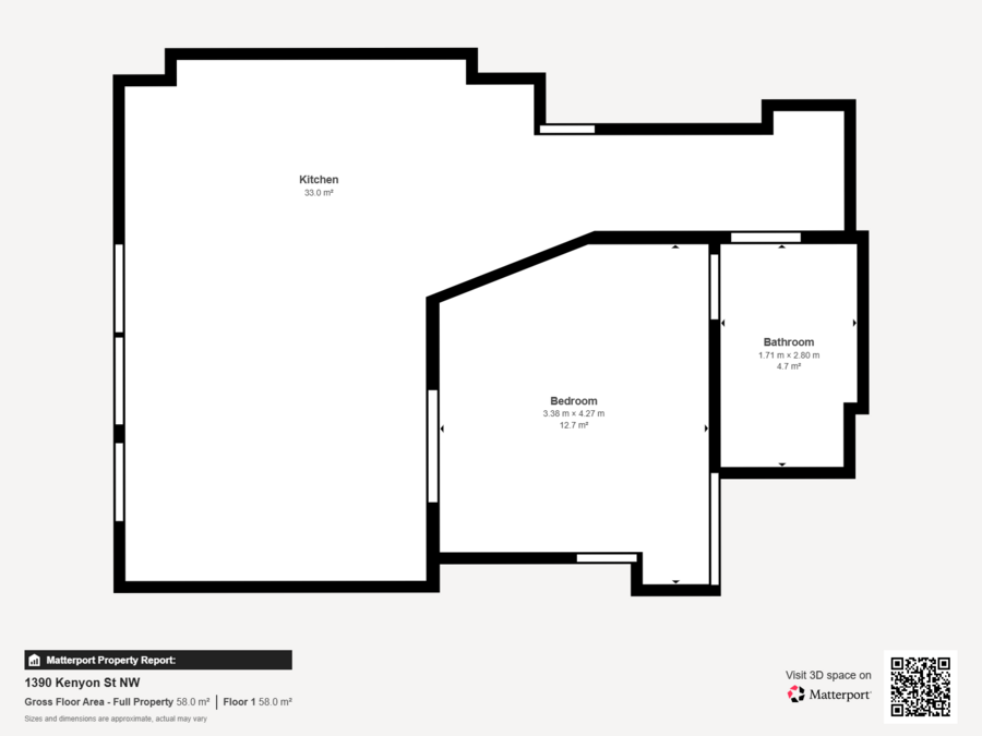 • 1 bed, 1 full bath