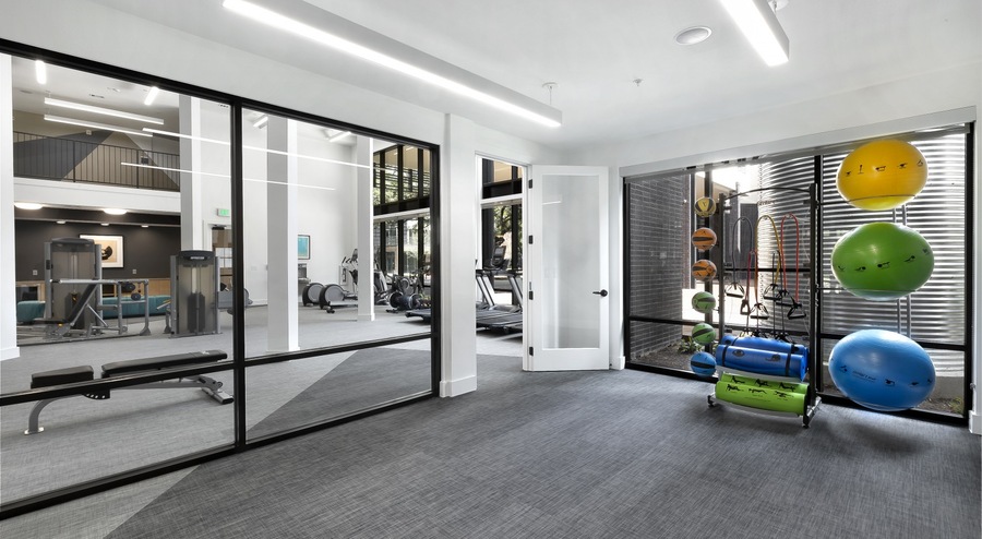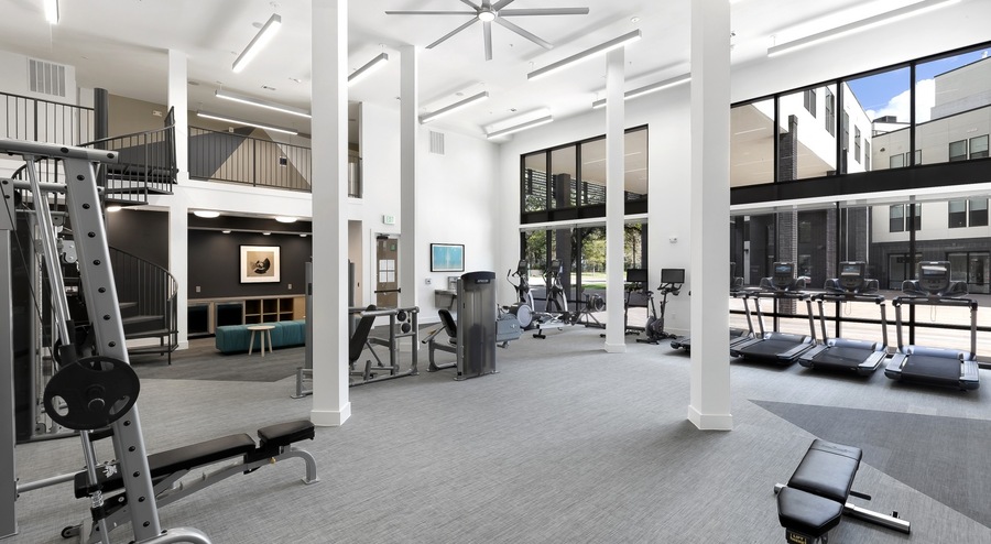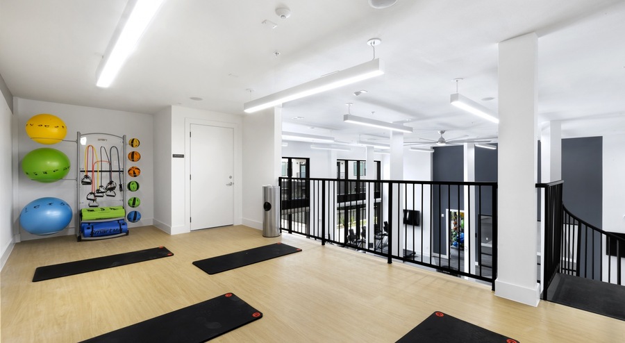 State-of-the-art fitness center and conditioning studio with quiet mezzanine