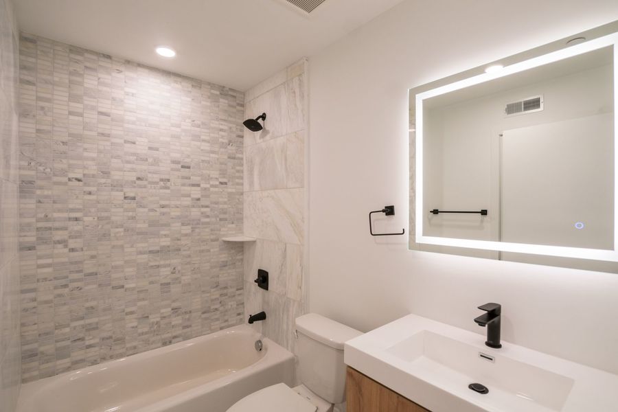 This 1 bedroom, 1 bathroom apartment comes with modern finishes, including hardwood floors, central AC, in-unit laundry, as well as recessed lighting. Natural light is also abundant with multiple oversized windows and there is plenty of closet space. The kitchen is beautifully appointed with quartz countertops, stainless steel appliances and subway tile backsplash. The contemporary full bathroom features a shower/tub and sleek vanity with a unique lighted mirror, while the bedroom has a window allowing for diffused natural light as well as its own closet. Residents also have access to a package room, bike storage room, and shared roof deck that offers amazing city views!