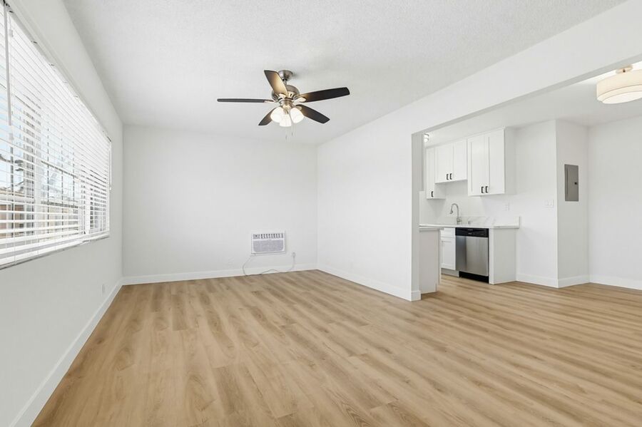 Discover this 1-bedroom, 1-bath apartment in Los Angeles featuring hardwood floors and hardwood cabinets that create a warm, modern feel. The unit includes air conditioning, ceiling fans, and space heater(s) for year-round comfort, plus stainless steel appliances, a refrigerator, dishwasher, microwave, and stove/oven for convenient meal preparation. In-unit laundry and available parking add practical ease, while gated property access and closed-circuit video monitoring provide added security. The building accepts pets and offers online payment options for rent and fees.
