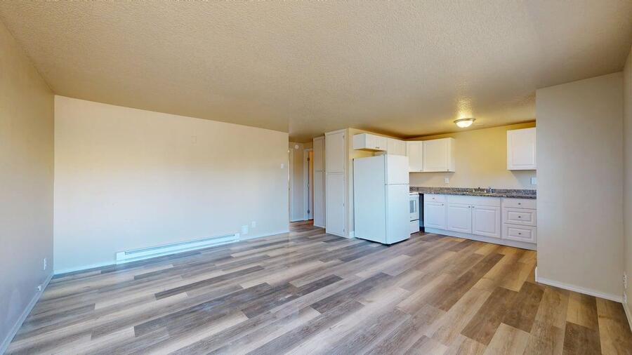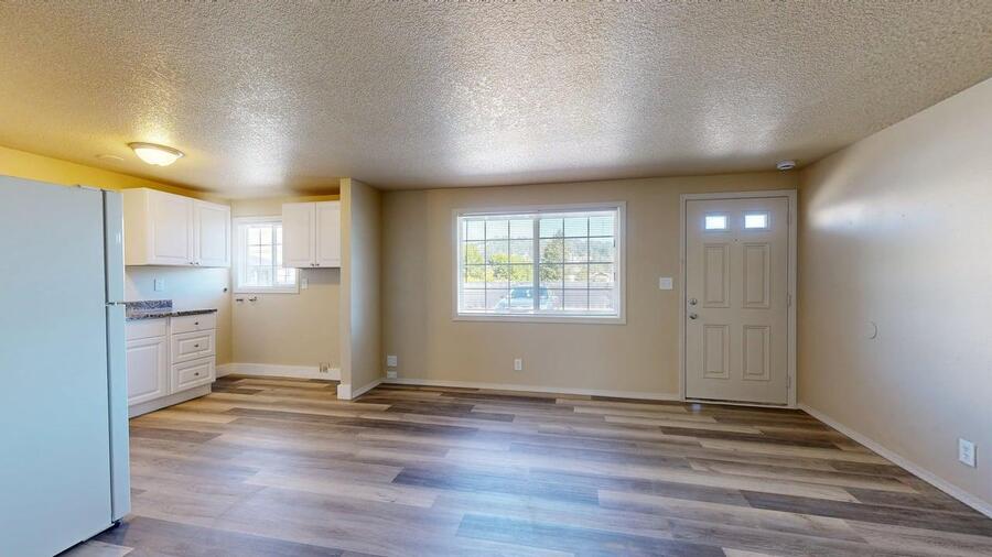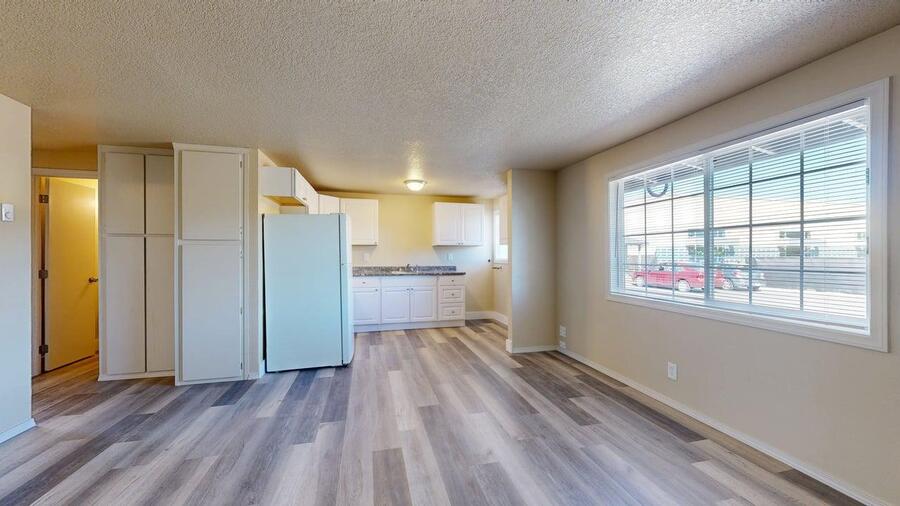 This single-level unit features an open-concept layout with fresh paint and brand-new LVP flooring throughout. The bright living room flows seamlessly into the upgraded kitchen, complete with white cabinetry, new appliances, and washer/dryer hookups for added convenience.