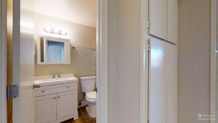 Down the hall, you’ll find a full bathroom with a tub/shower combo, plus two bedrooms—one with a spacious closet and the other with deep shelving for extra storage. Tucked away on a peaceful flag lot, this home offers both privacy and charm. Schedule your tour today!
