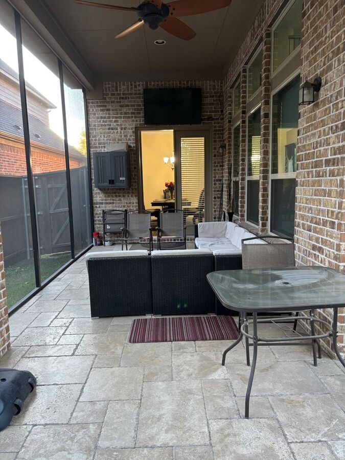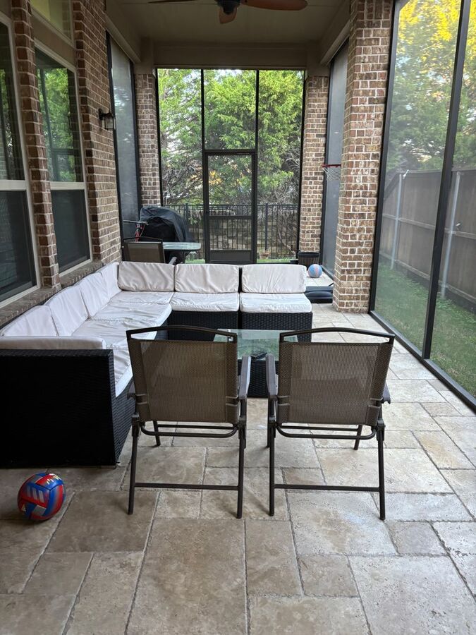 ✅ Screened-in patio with furniture and 55" Samsung TV