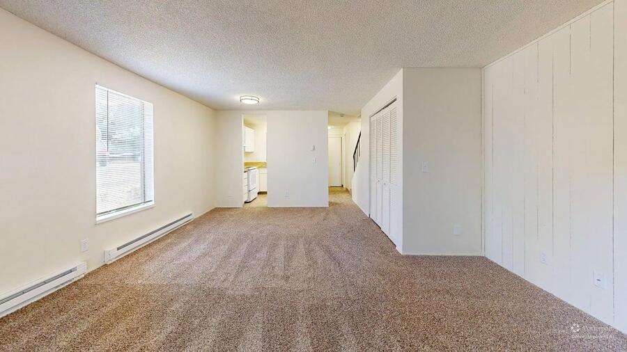 Welcome to this bright and spacious end-unit townhome in a four-plex, tucked away on a peaceful street just off Rock Creek Blvd near 185th. Step inside to brand-new carpet throughout the main level, featuring a light-filled kitchen with ample pantry space, a cozy dining area, and a comfortable living room with a decorative fireplace. Enjoy convenient access to a private, fenced backyard and patio—perfect for relaxing or entertaining.