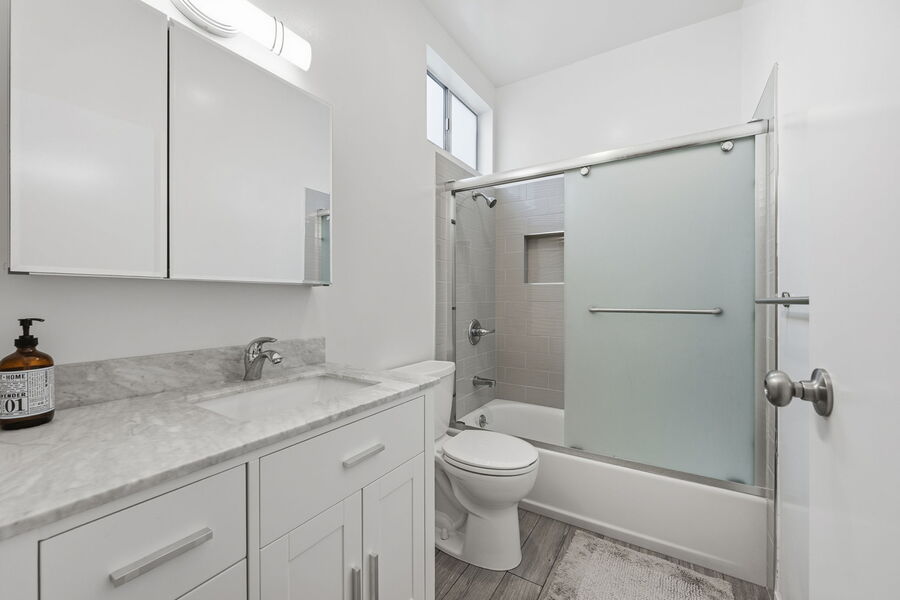 This newly renovated 2-bed 1-bath apartment features hardwood floors, a modern kitchen with a dishwasher, and in-unit laundry.