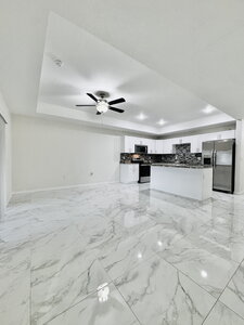 This 3 bedroom, 1 bathroom single family home offers 1,225 square feet of comfortable living space with a simple, practical layout that makes everyday living easy. The home features tile flooring throughout, making it easy to maintain and keeping the space cool year-round. The main living area is open and spacious, with large windows that bring in natural light and ceiling fans to keep the air moving.