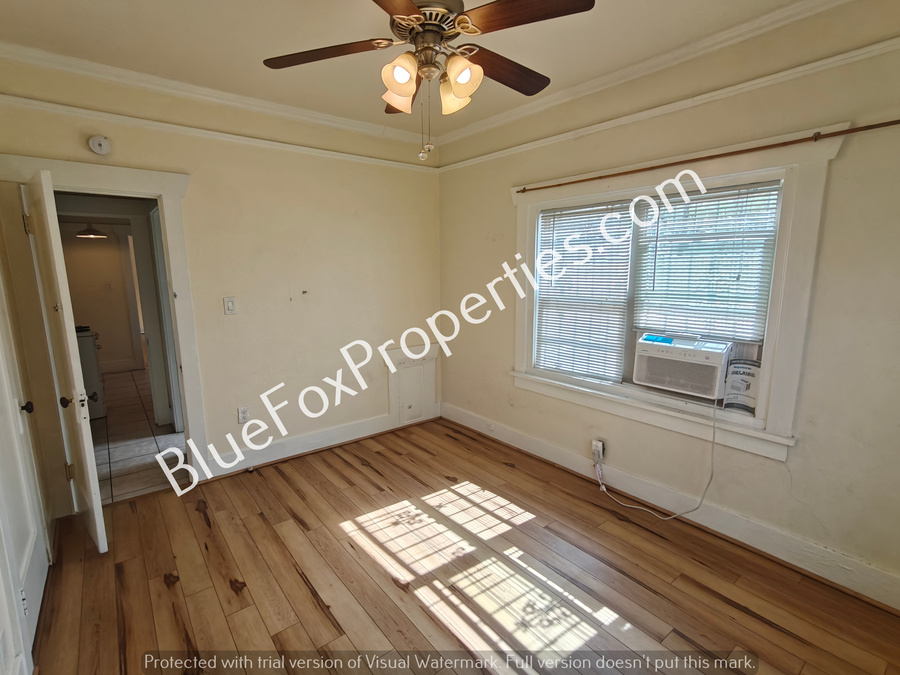 Vintage 1 Bedroom duplex located just minutes from U of A and all that downtown Tucson has to offer. The spacious living-room has original hardwood floors, fireplace, original wall and window trim, lots of natural light and built-ins. The eat-in kitchen has plenty of cabinets, storage shelves and tile floors. Your bedroom is complete with a walk-in closet, easy care floors and lots of light. The bathroom has tile flooring and tub/shower combo. The convenient built-in's just off the bedroom are original to the home. Tons of charm and character, charming front porch and private back yard! Window A/C. Parking allowed in the street, the basic rule is that the direction of the parked vehicle must be North to South.